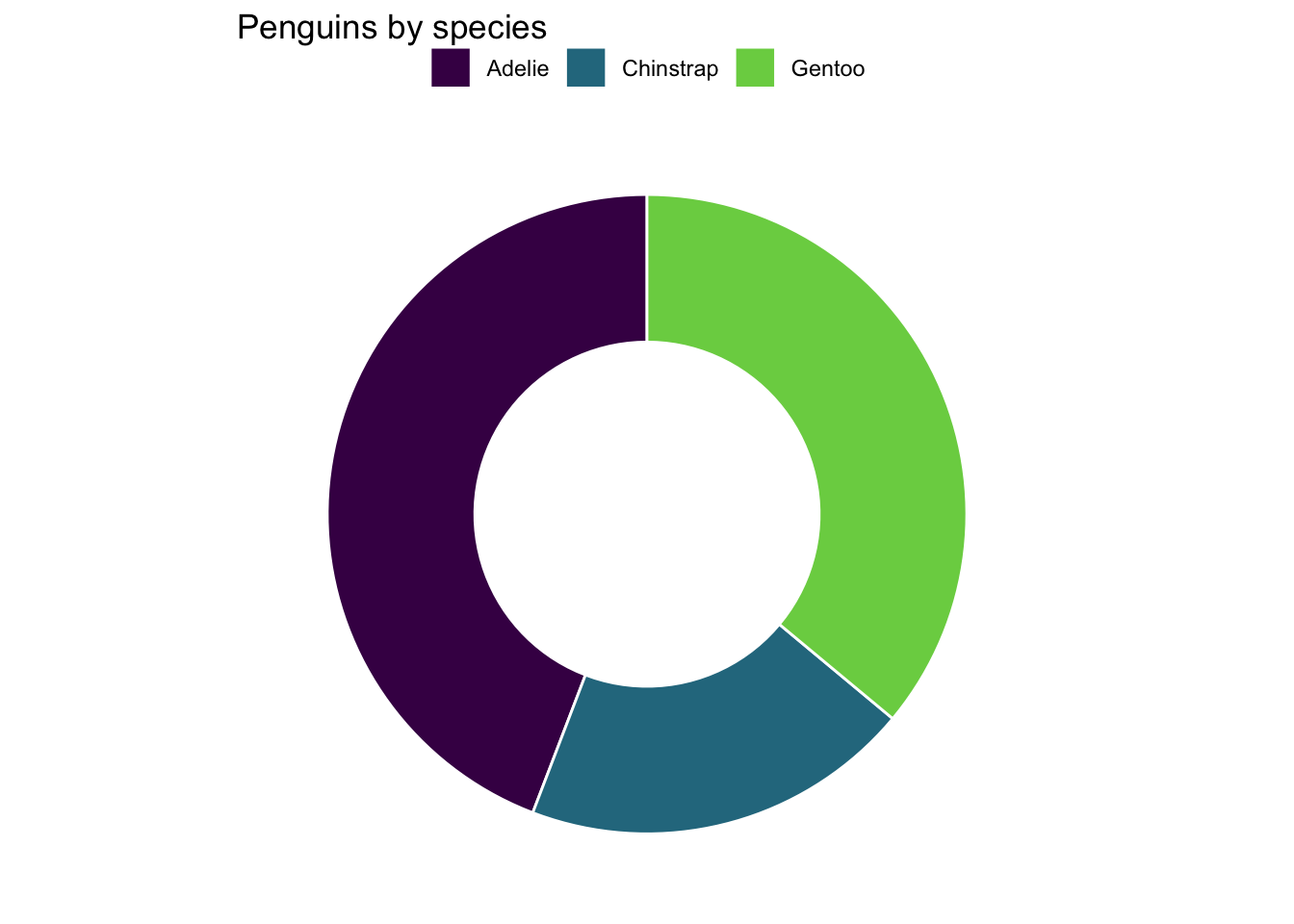 theme(legend.position = "top")Your turn: Reflect on the differences between waffle charts and pie/donut charts. For this data, which chart type do you find more effective? Why?