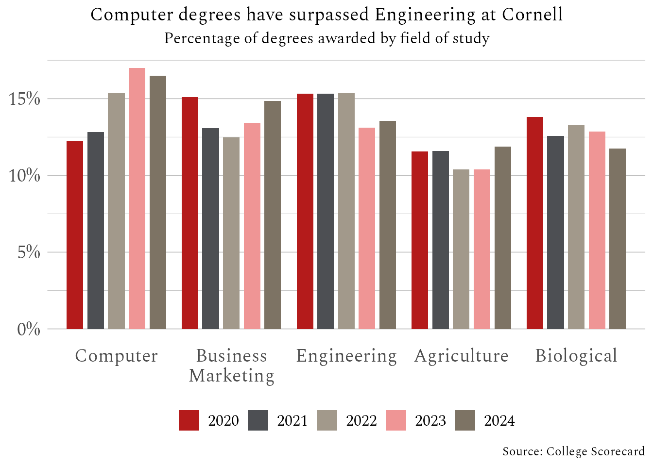 title = "Computer degrees have surpassed Engineering at Cornell",