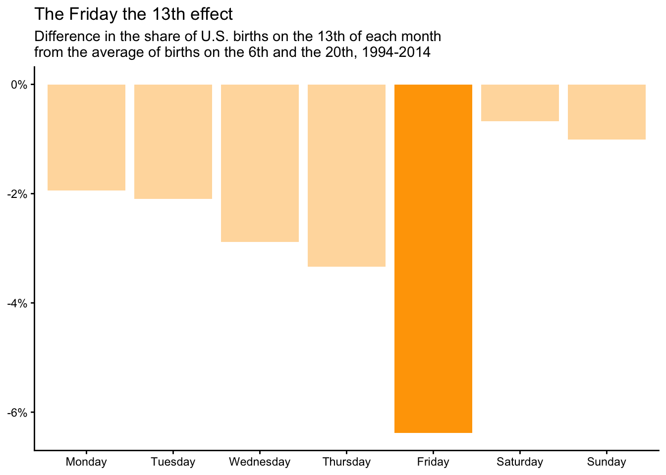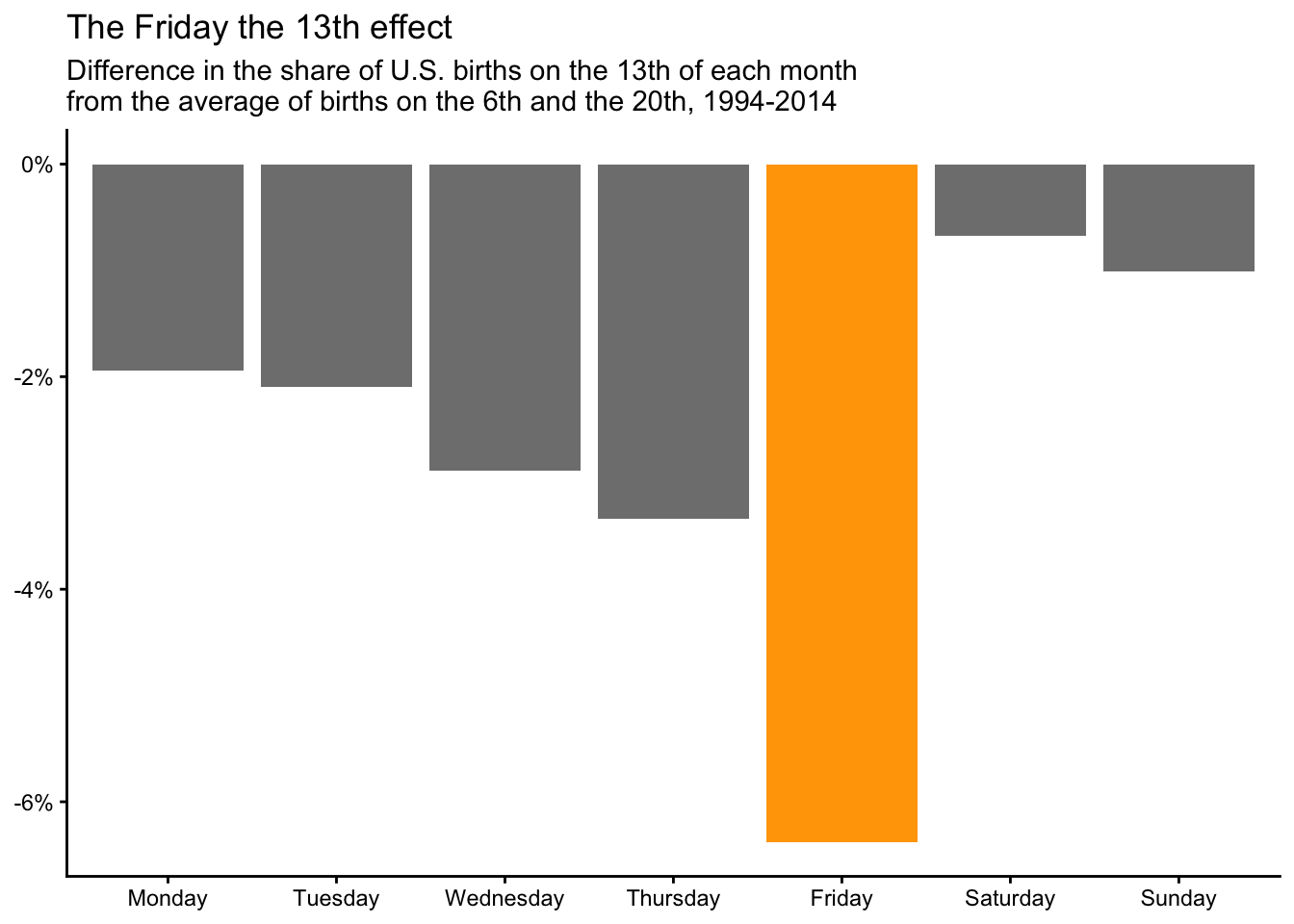 subtitle = "Difference in the share of U.S. births on the 13th of each month\nfrom the average of births on the 6th and the 20th, 1994-2014"