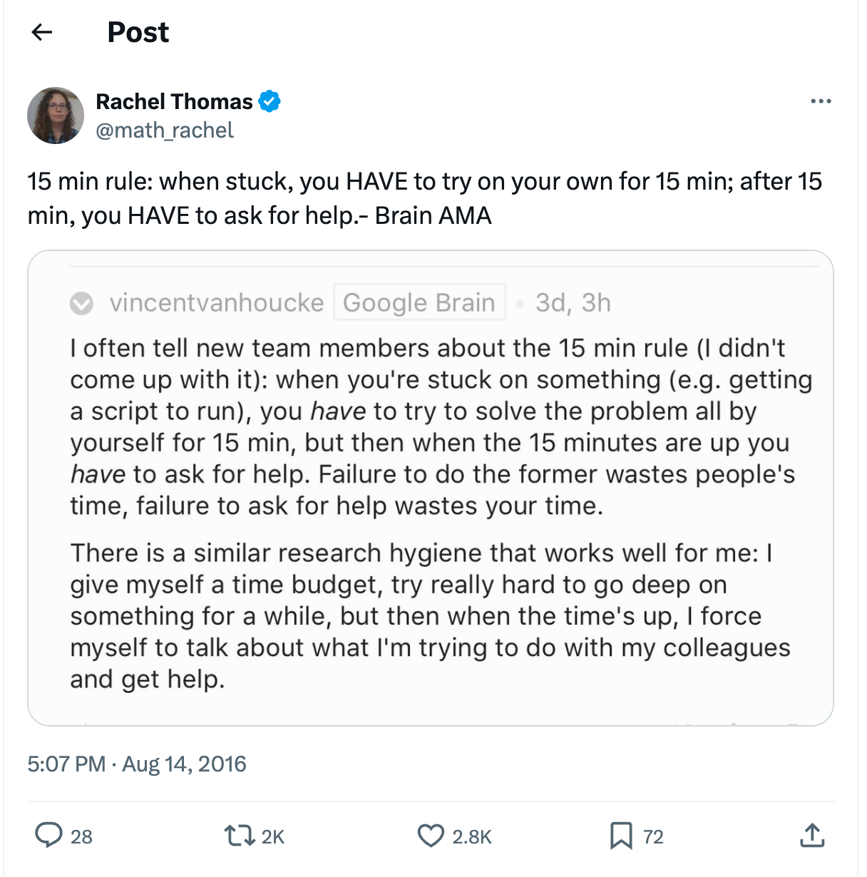 If you are stuck on a problem, you should attempt to fix it on your own for 15 minutes. After 15 minutes, you must ask for help.