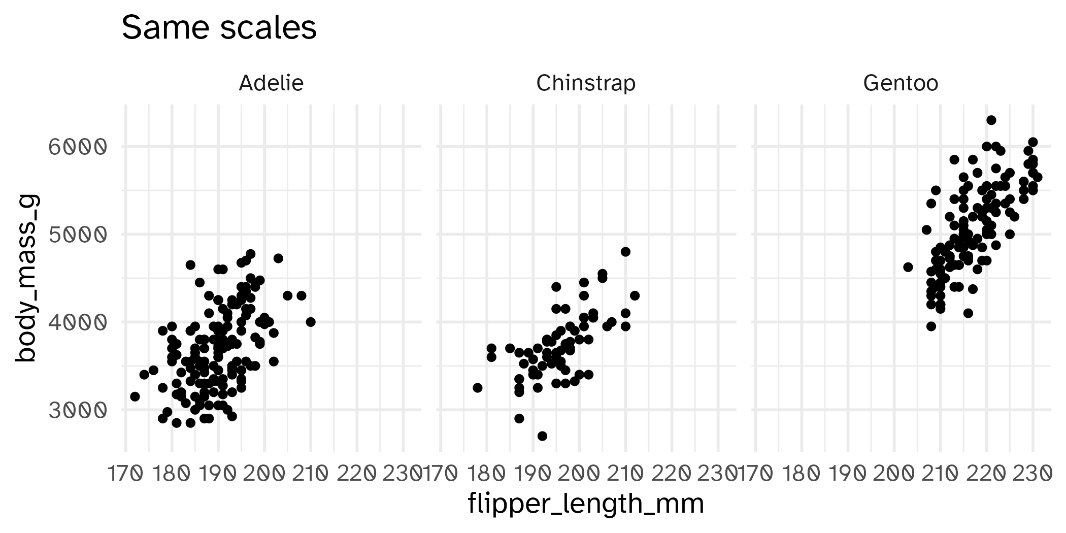 ## (`geom_point()`).scale_*_continuous(limits = ...)xlim() and ylim()coord_cartesian(xlim = ..., ylim = ...)