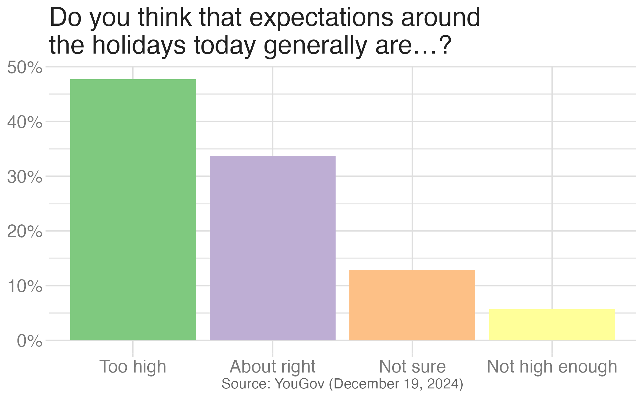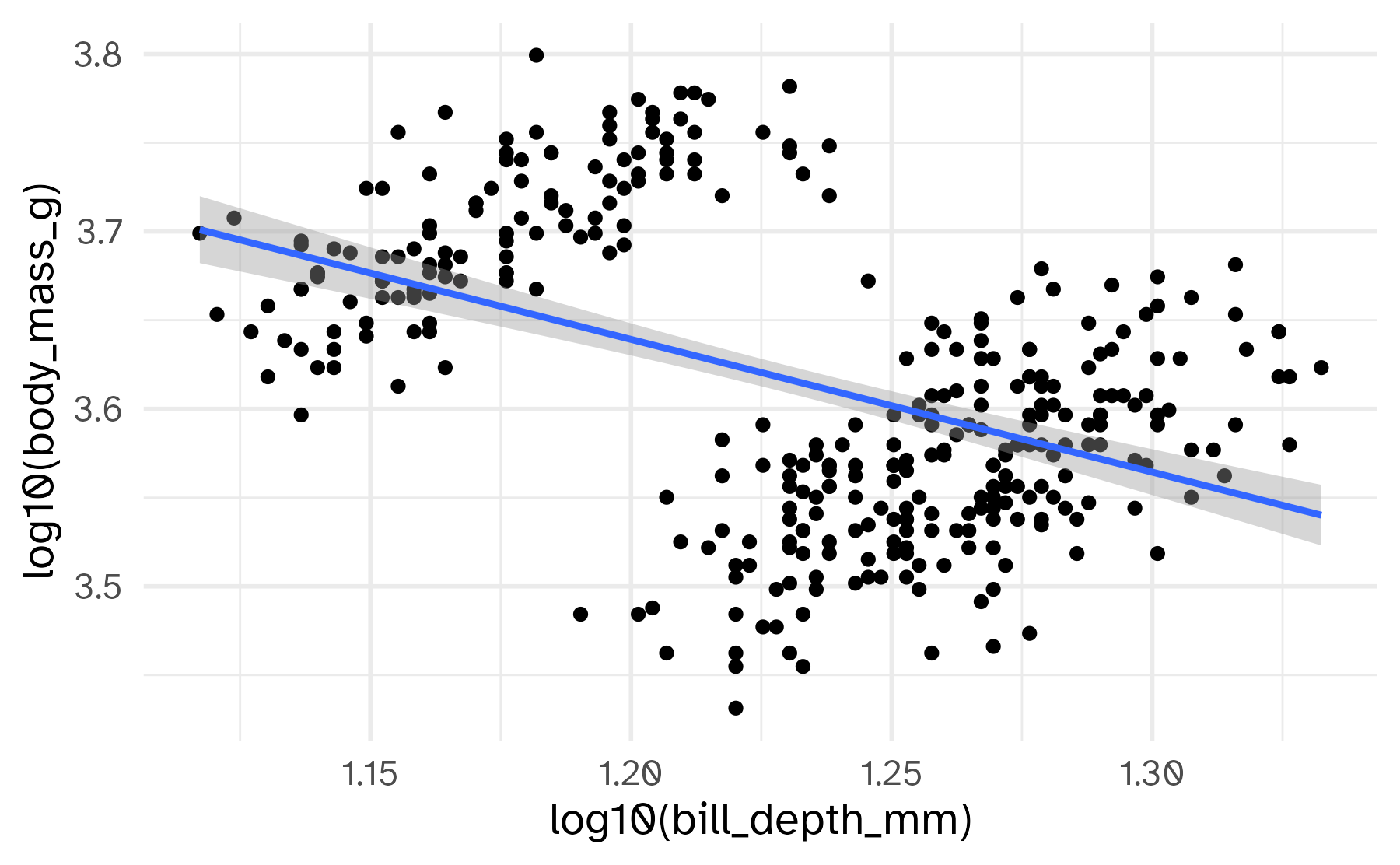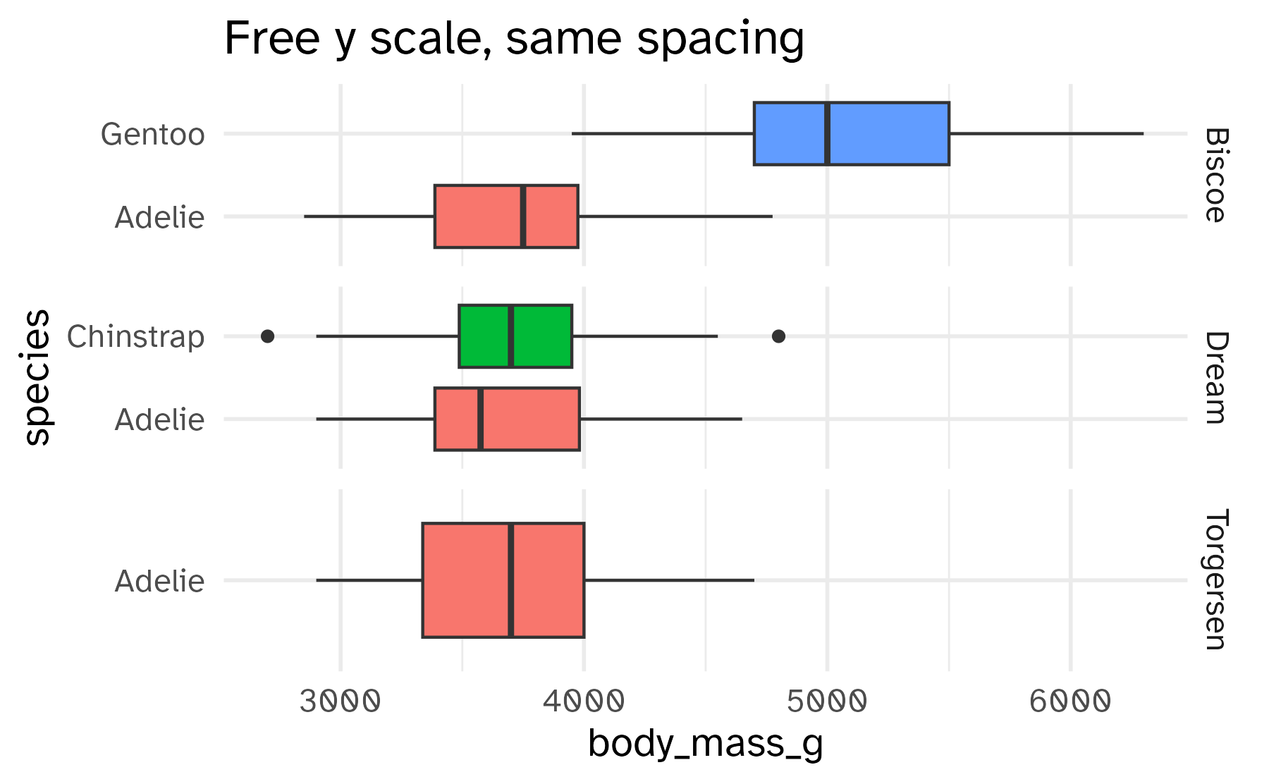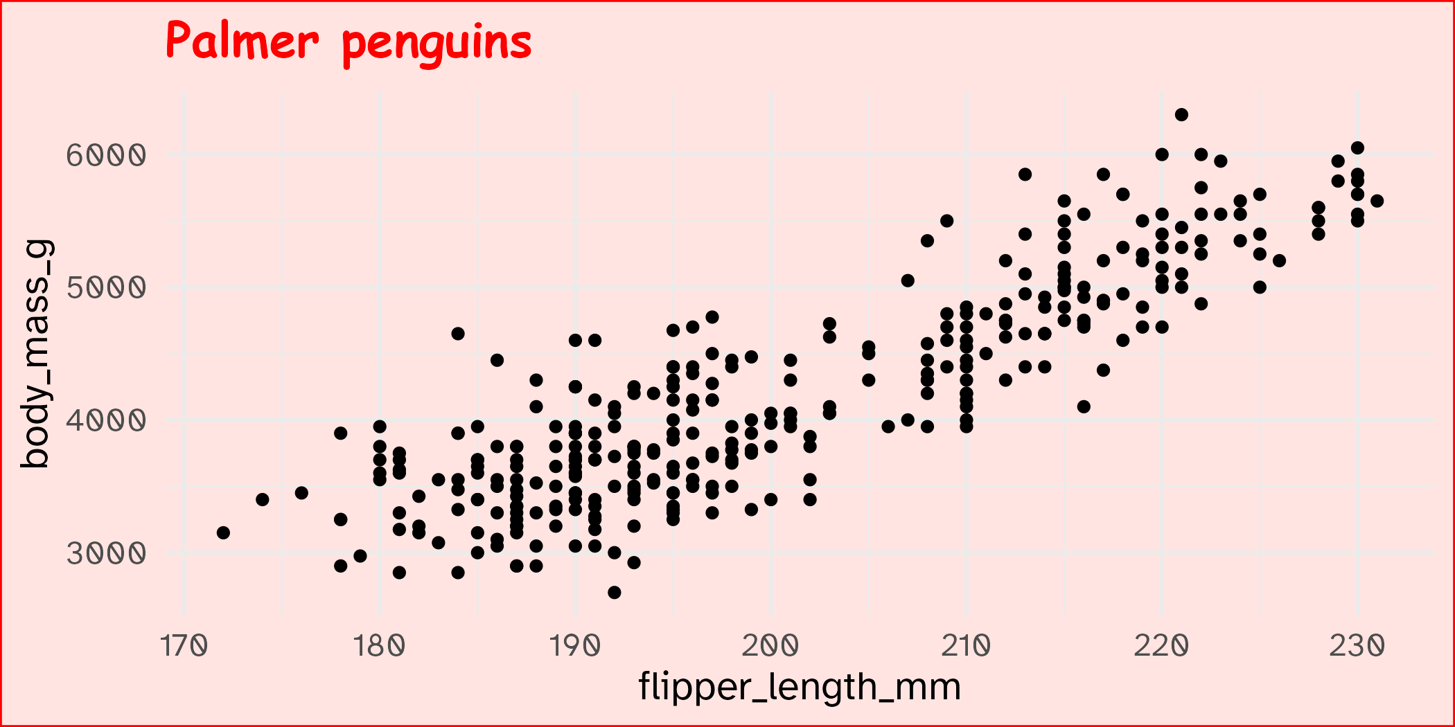 coord_fixed()Useful when having an aspect ratio of 1 makes sense, e.g. scores on two tests (reading and writing) on the same scale (0 to 100 points)
