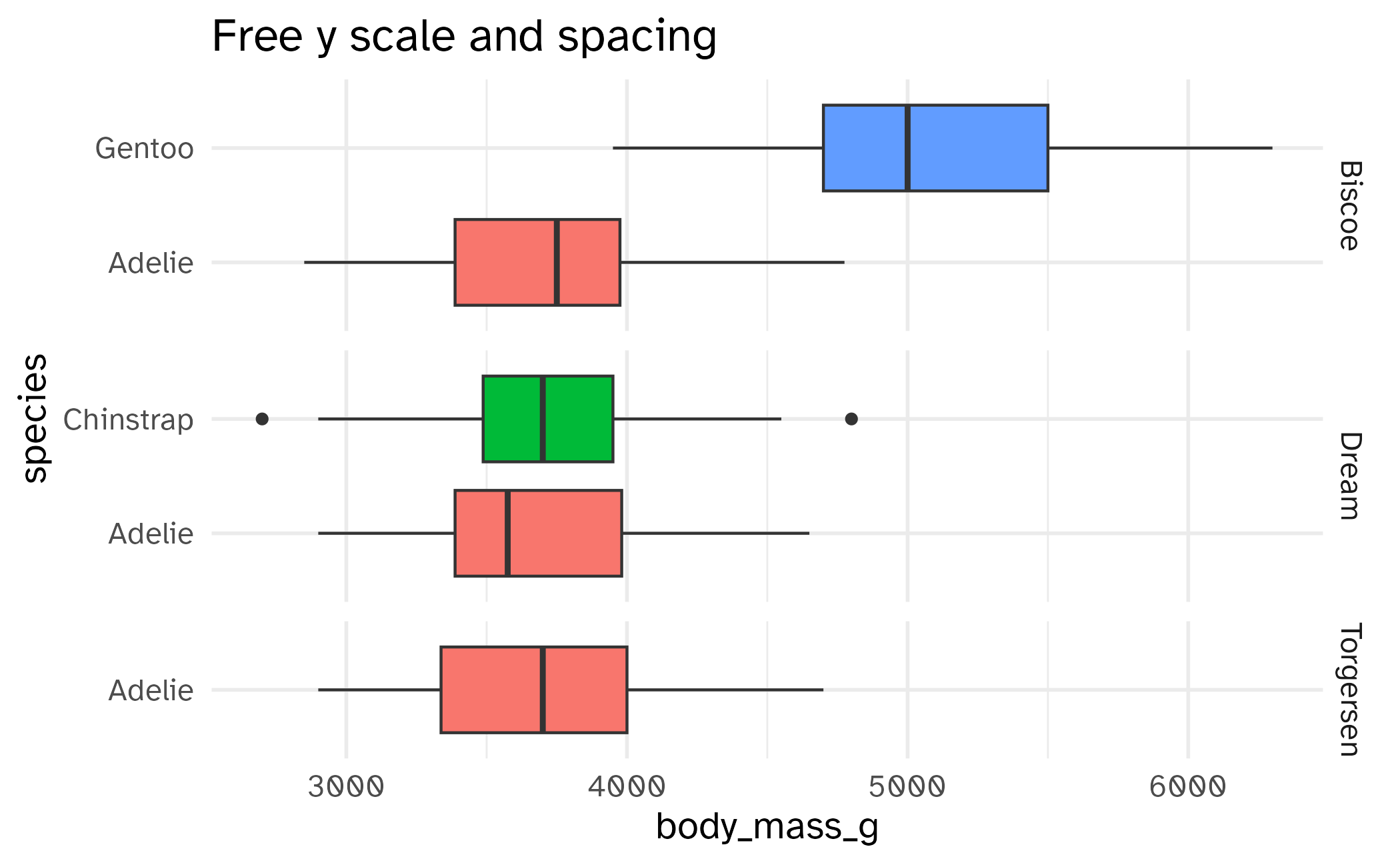 ggplot(penguins, aes(y = species, x = body_mass_g, fill = species)) +