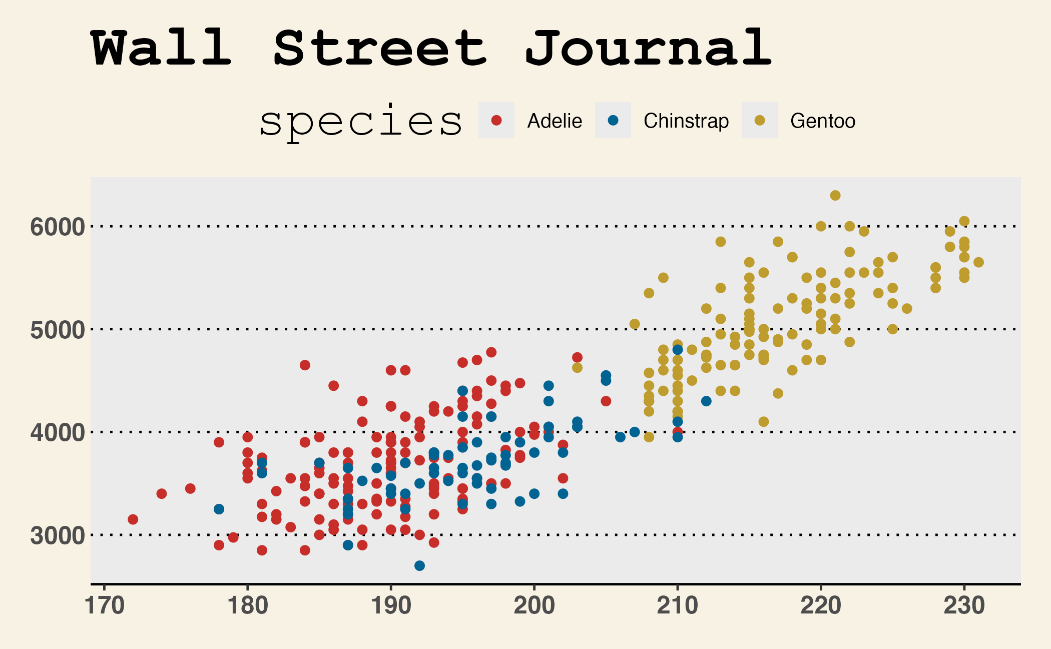 ggplot(penguins, aes(y = species, x = body_mass, fill = species)) +