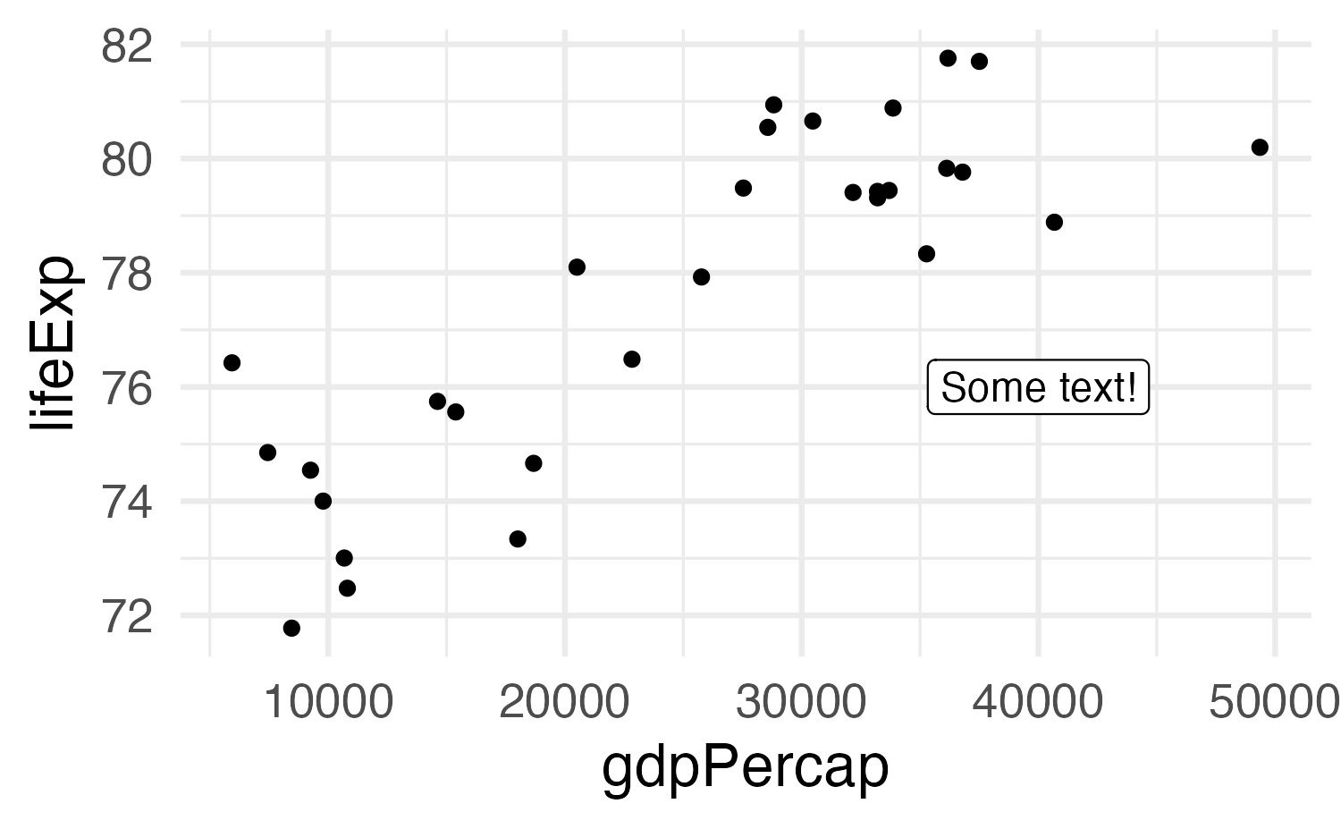 geom_text(), geom_label(), geom_text_repel(), etc.