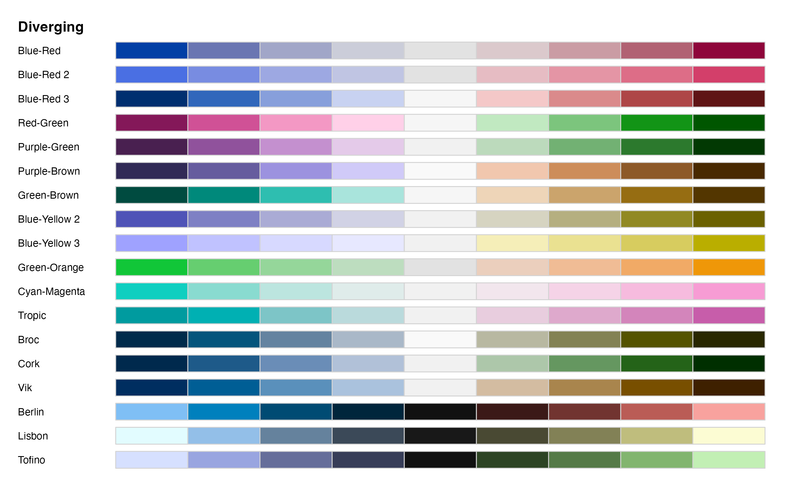 | scale_color_distiller() | color | continuous | qualitative, diverging, sequential |