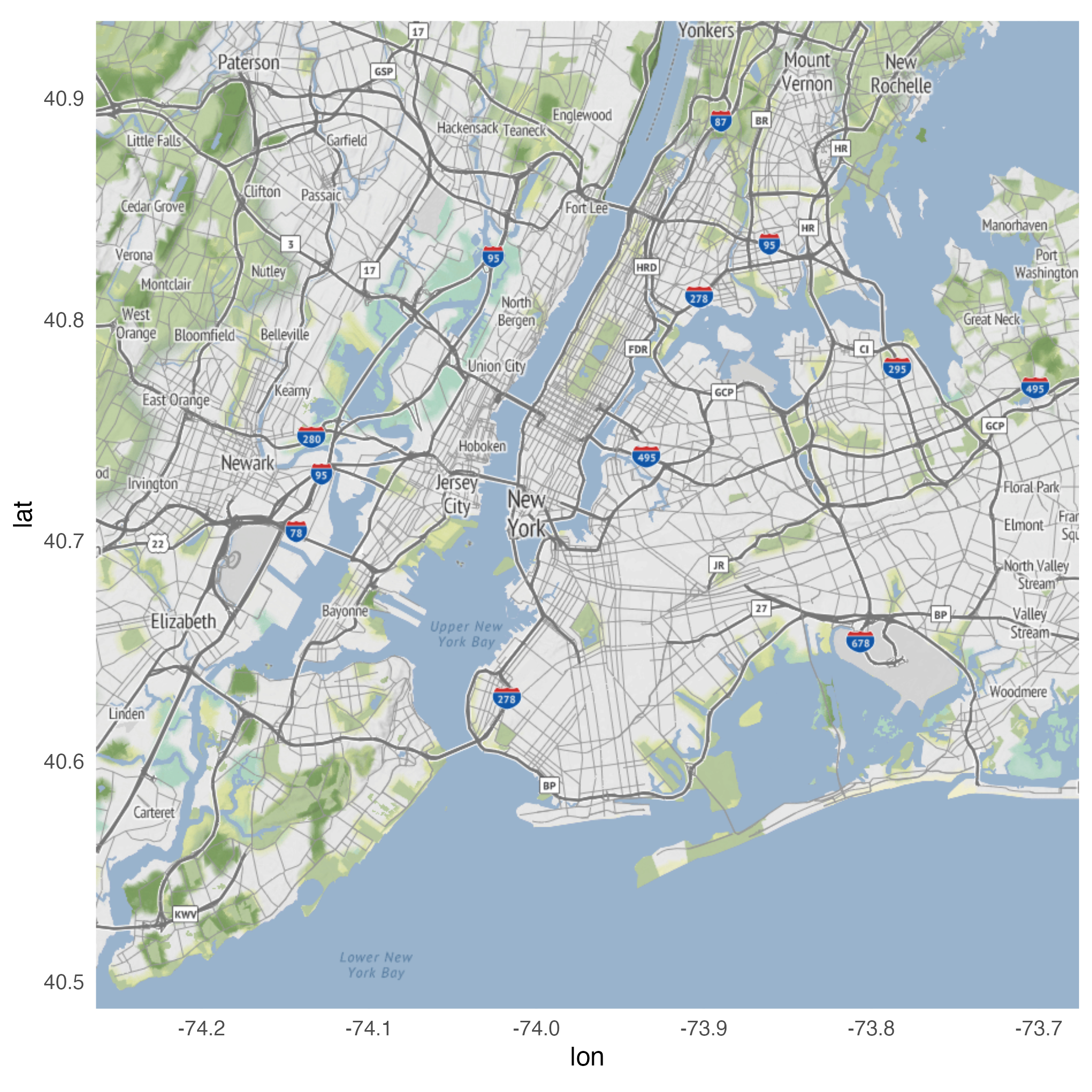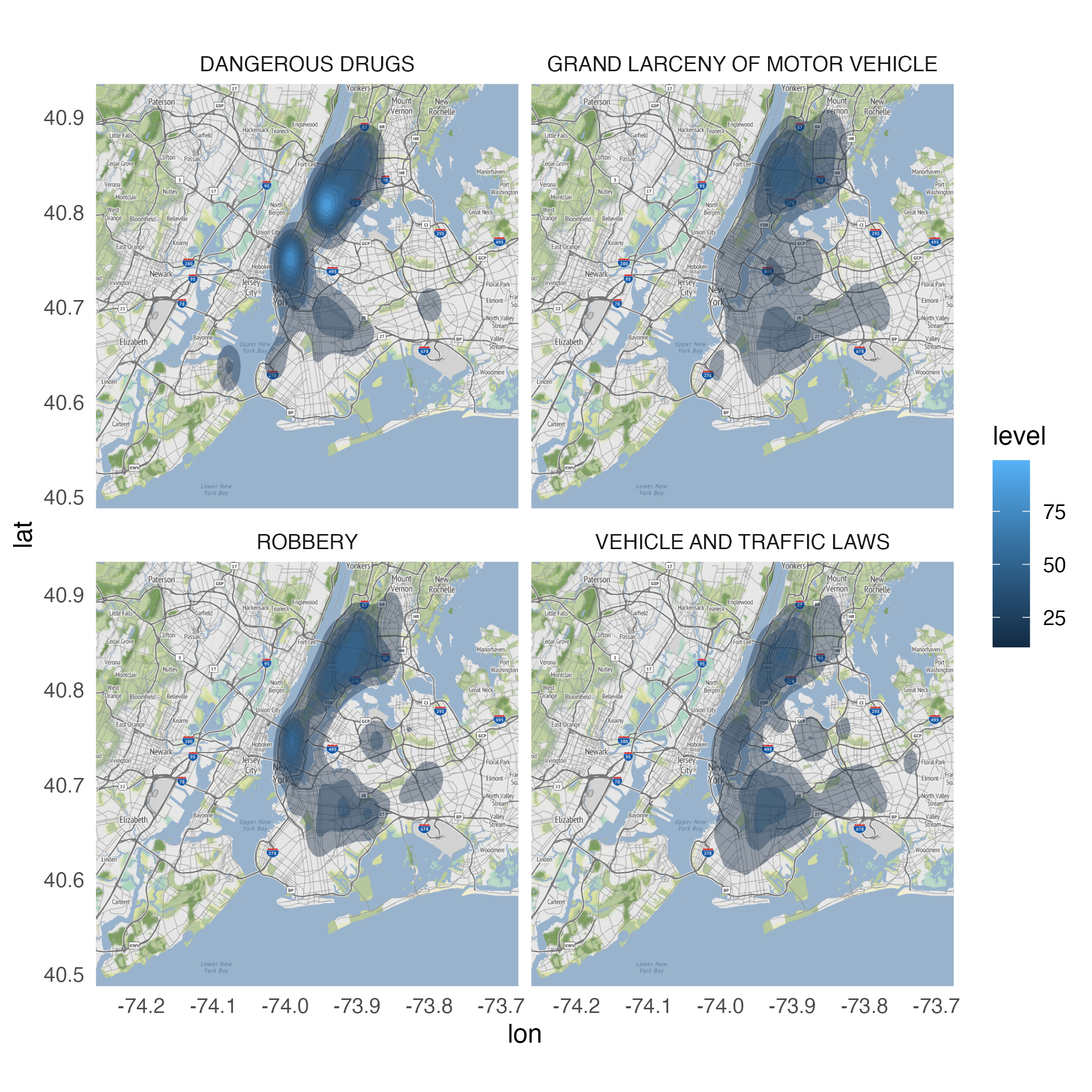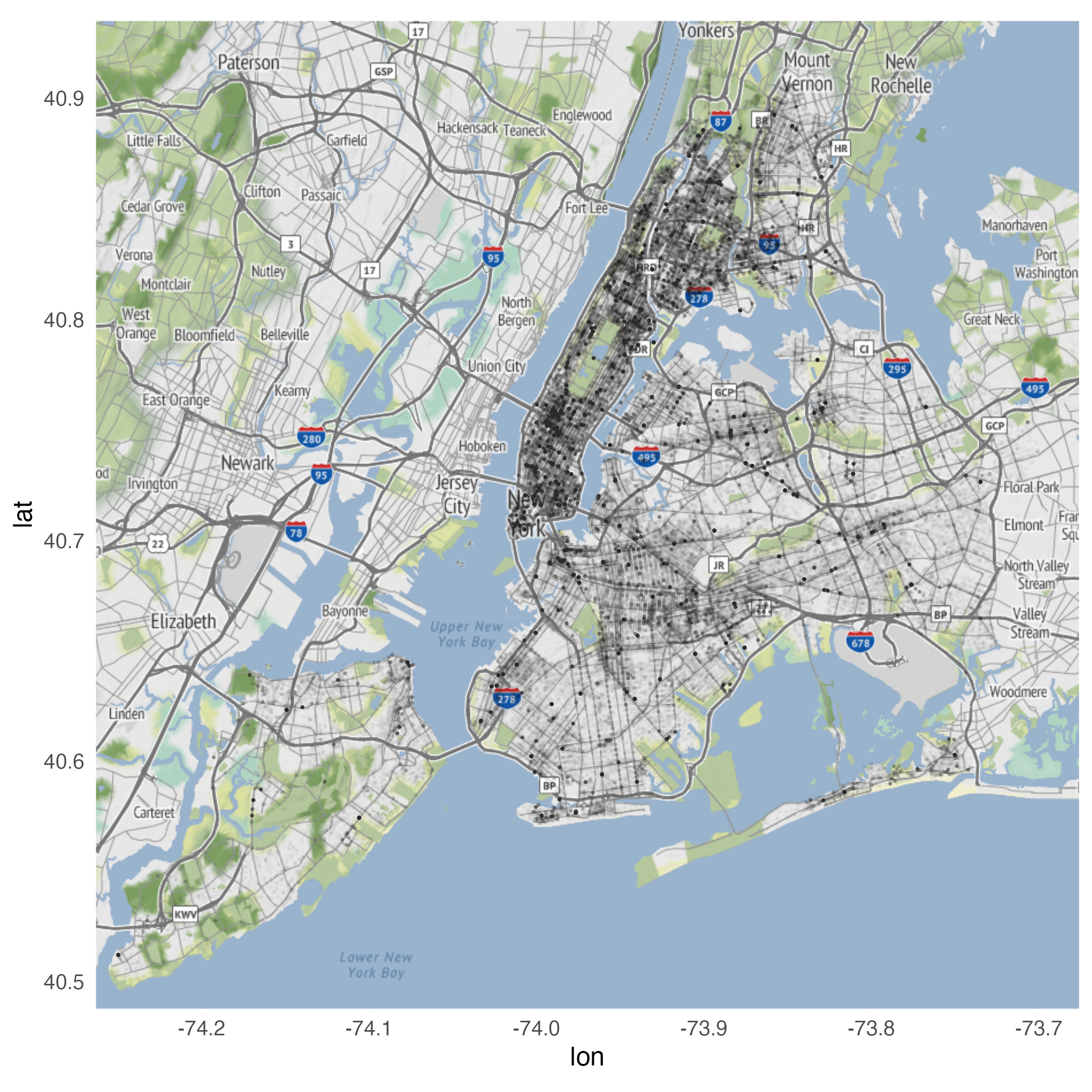 geom_point()geom_point()geom_density_2d()stat_density_2d()stat_density_2d()ggmap(nyc) +